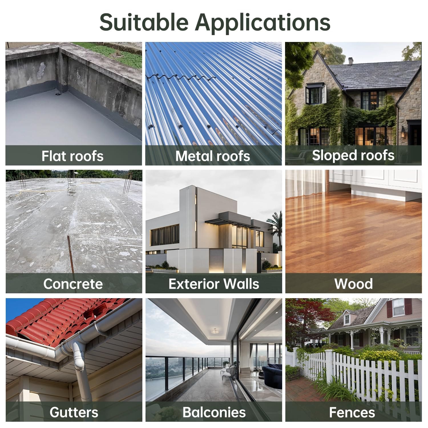 • Sản phẩm thích hợp để xử lý chống thấm cho mái nhà bê tông mới và cũ ngoài trời, sân thượng, máng xối, ban công và các bộ phận tiếp xúc trực tiếp khác với môi trường bên ngoài.